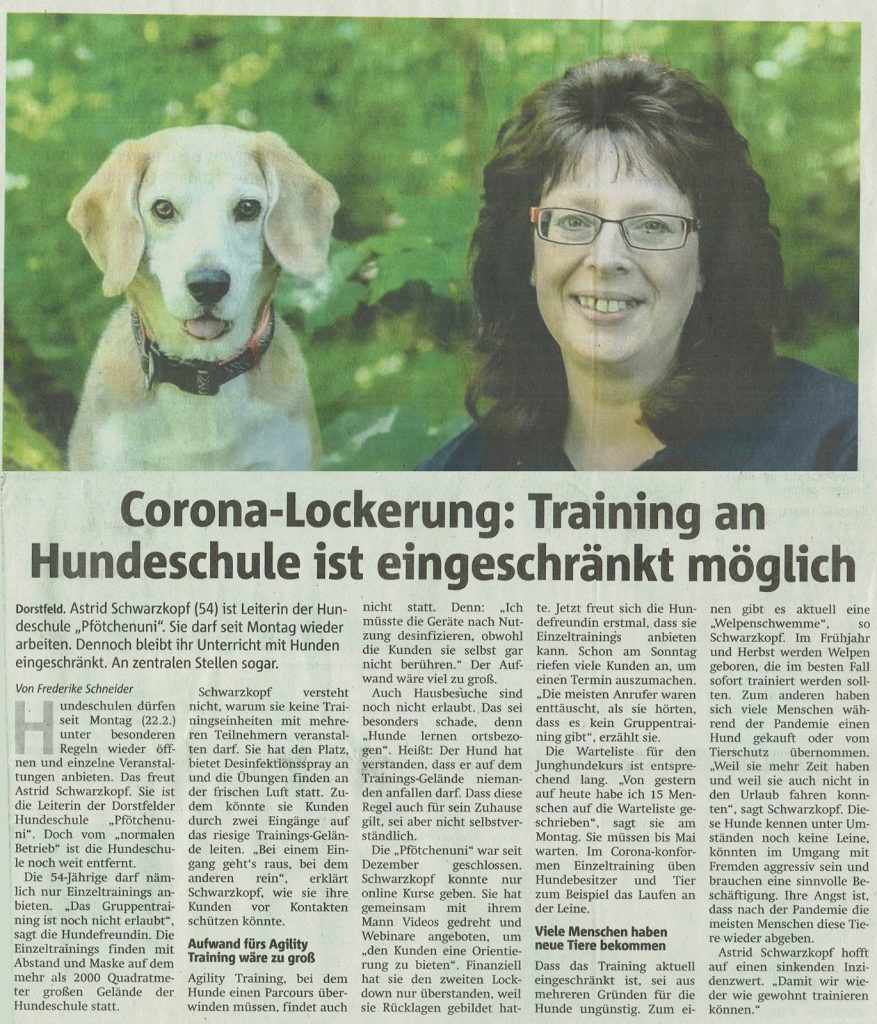 Ich wurde seitens der Redaktion angerufen, wie es denn den Hundeschulen ginge und der Pfötchenuni im Speziellen und wie es zur Zeit mit Training und Co. aussehe.